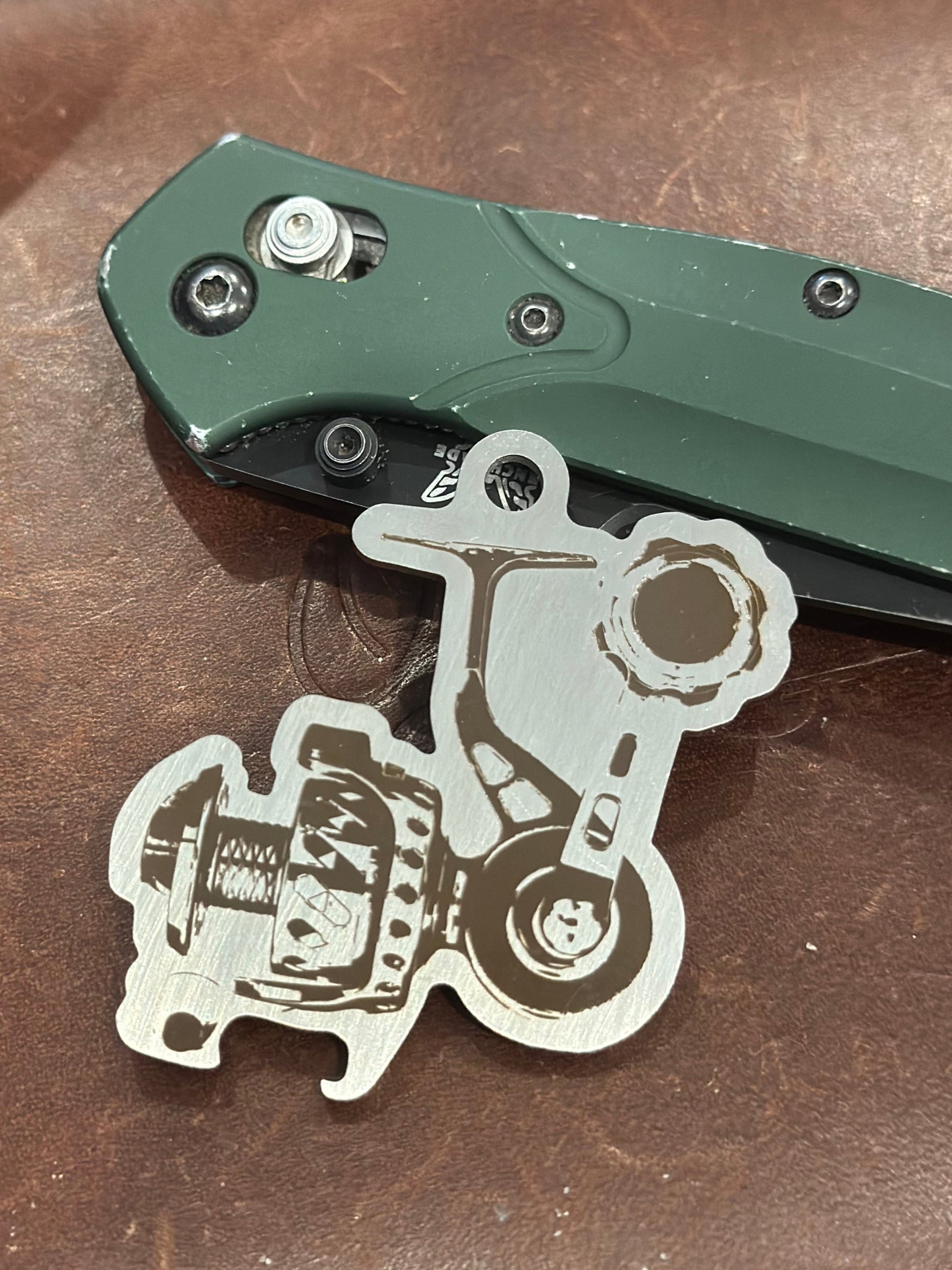 - Image: Laser Engraved with the image of a distressed Van Staal fishing reel